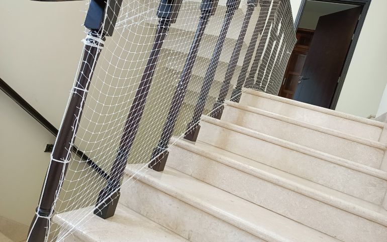 A safety net used on stairs limits how far people and valuables fall, protecting them from injury. Our skilled team can install the netting on any type of staircase. If you have children or pets at home, a safety net for the stairs is necessary. Dial Us.